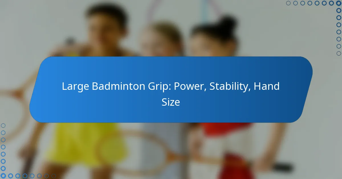A large badminton grip can greatly improve shot power and stability by offering better control during swings. By providing a firmer hold, a larger grip enhances performance and reduces slippage, which is vital for various playing styles. Choosing the right grip size is essential for maximizing both power and stability while minimizing the risk of injury.